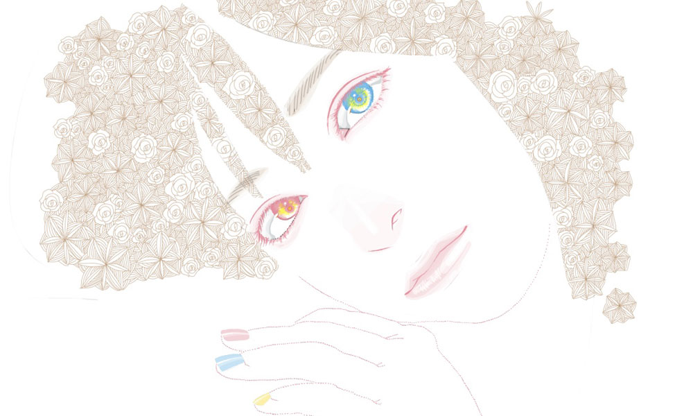 高校生向けの授業のための参考作品として描いた。コロナ禍初期の長い休校明け、分散登校をするような状況で美術室で共通の道具を使ったりするよりは教室でそれぞれのiPadを使って課題をする方が安全かと考えて生まれた題材。学習アプリであるロイロノートの限られた機能で工夫して描くたのしさもあった。相変わらず模様を描くのがすき。